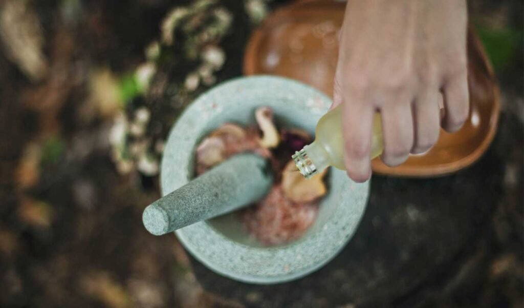 10 Tropfen ätherisches Öl (Lavendel, Rosmarin, Pfefferminze)